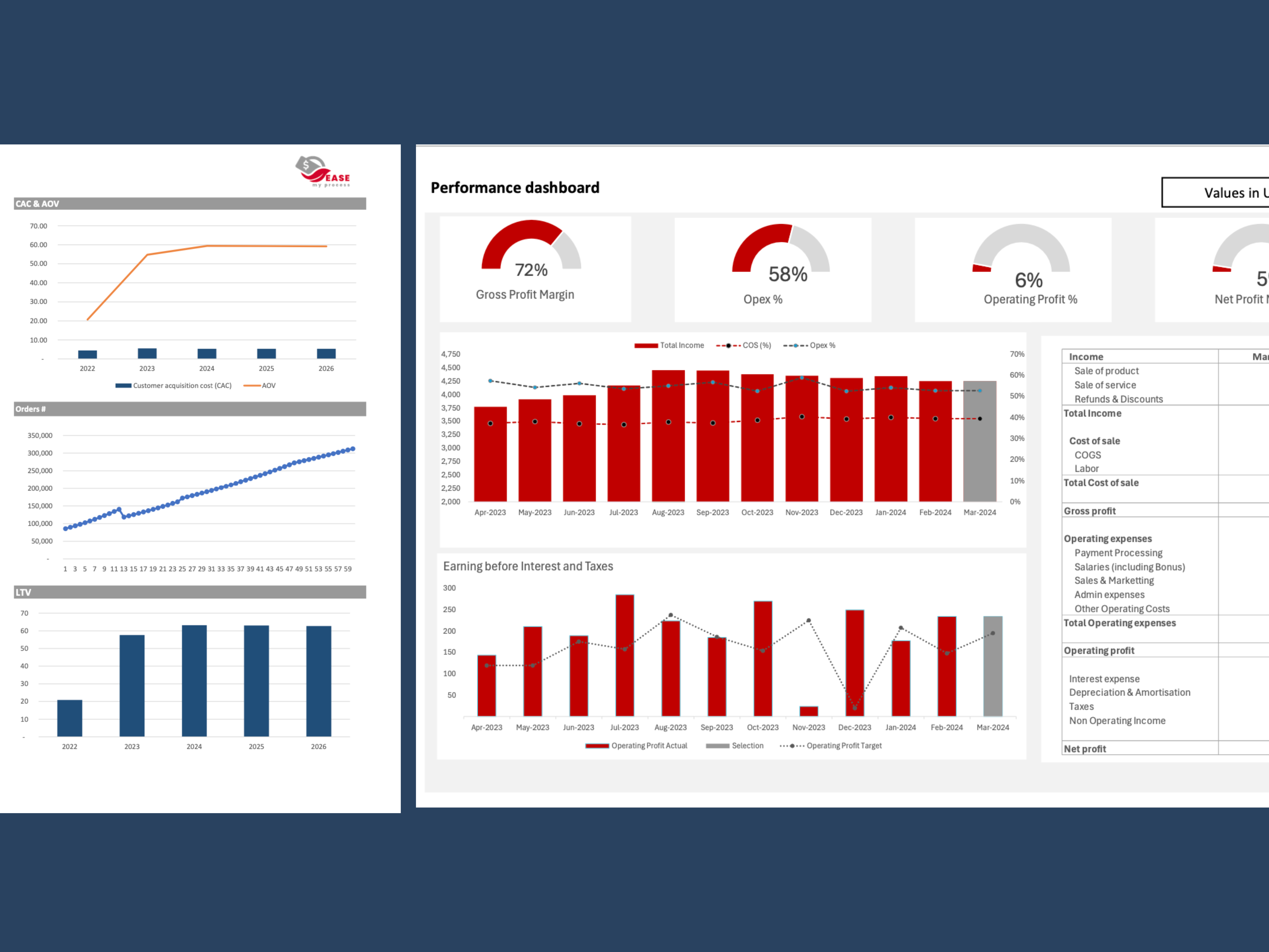 ● Customer Acquisition Cost (CAC): The cost of acquiring a new customer, which helps understand the efficiency of your marketing efforts.